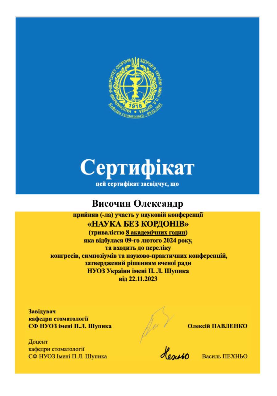 Наукова конференція «Стоматологія України: освіта, наука, практика, професійне об'єднання», лектори Олексій Павленко, Василь Пєхньо, ​​9 лютого 2024 р.