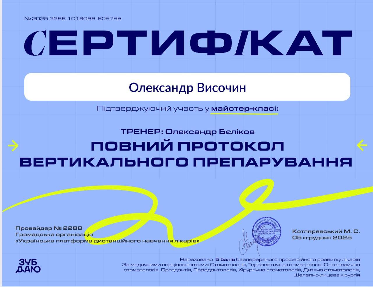 Майстер-клас «Повний протокол вертикального препарування», лектор Олександр Бєліков, 5 грудня 2025 р.